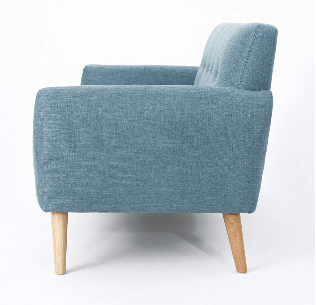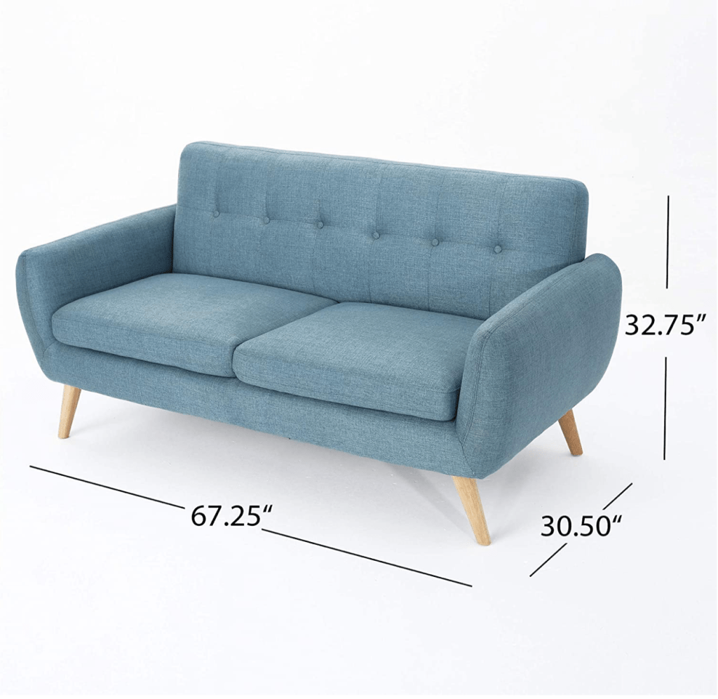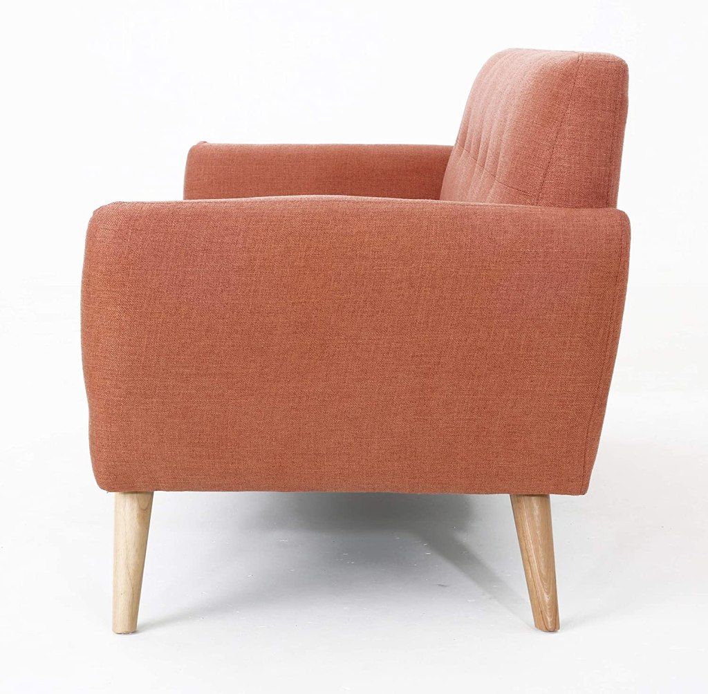 With its petite build, this loveseat is perfect for smaller living spaces like apartments and dorm life. The cushioned seats ensure that you’ll be as comfortable on the couch while watching your favorite TV show or reading something absorbent! This midcentury-style piece has accents which will keep it stylish year after year with changing trends in home decorating styles.