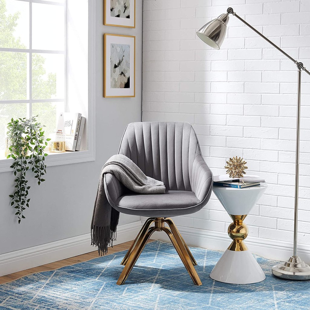 This swivel armchair, which features twin legs and a flexible seat, is ideal for small areas. It will be the focal point of your living room, bedroom, dining area, and office.